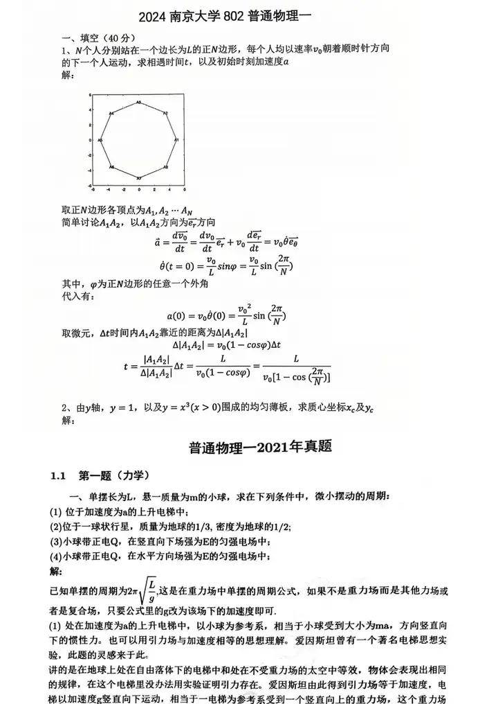 2010-2024年南京大学802普通物理一考研真题参考答案
