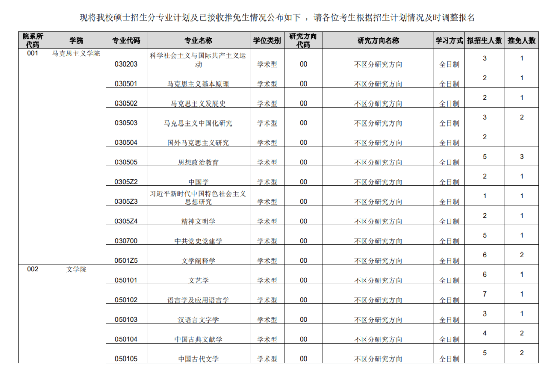 学校硕士招生分专业计划及已接收推免生情况公布如下,请各位考生根据招生计划情况及时调整报名。