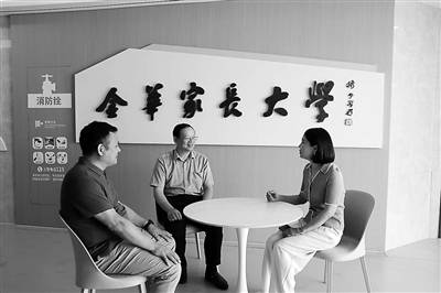 家庭教育专家吴惠强教授(中)在接受金华市中小学家长咨询。饶旭华 摄