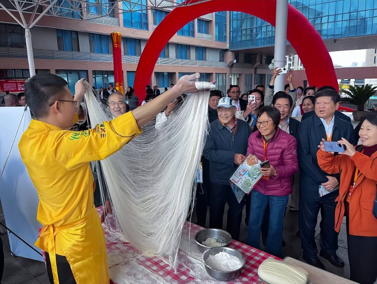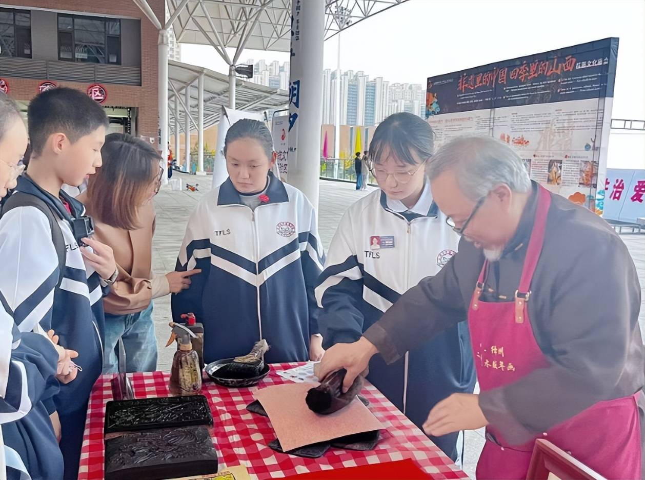 会议举办期间,“四季里的非遗・非遗里的山西”展示活动同步开展,会议现场特别设置了7个主题展区呈现堆锦、晋作家具、平定砂器等非遗项目,传承人现场演示技艺,参会者驻足体验。嘉宾们还来到太原市外国语学校摄乐校区现场参观了太原市外国语学校第三届校园庙会,在非遗、美食、游戏三大主题区域,体验了15种精彩的非遗项目,品尝了山西非遗特色美食。