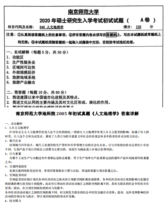 2000-2022年南京师范大学839人文地理学考研真题试卷