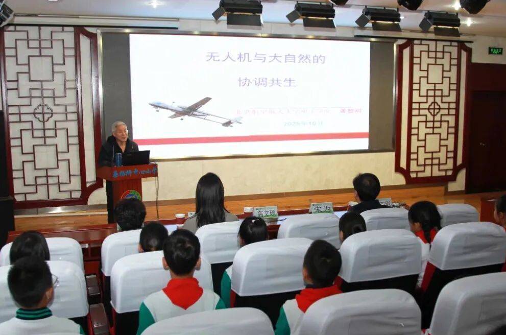 学校开展了航空航天科学家进校园活动。北京航空航天大学电子信息工程学院教授黄智刚带来“无人机与大自然的协调共生”科普讲座。他结合实例,展示了无人机在农业、环保等领域的广泛应用,生动阐释了“协调共生”的理念。在互动环节,学生积极提问,加深了对前沿科技的理解。