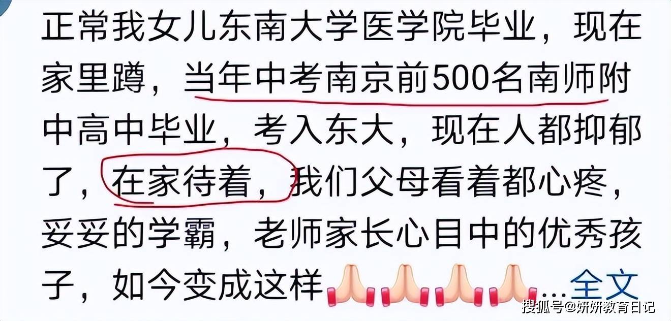 当年她中考考了南京市前500名,还从著名的南师附中高中毕业,可现在父母看着她待业的模样,满心心疼,老师眼中的优秀学生,怎么会变成这样?