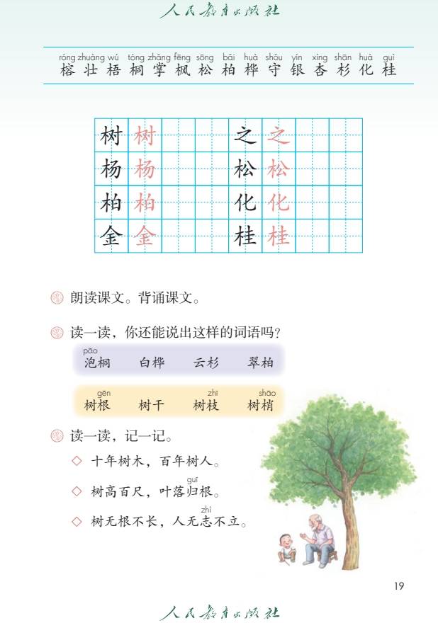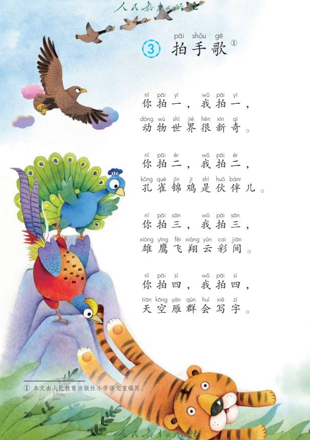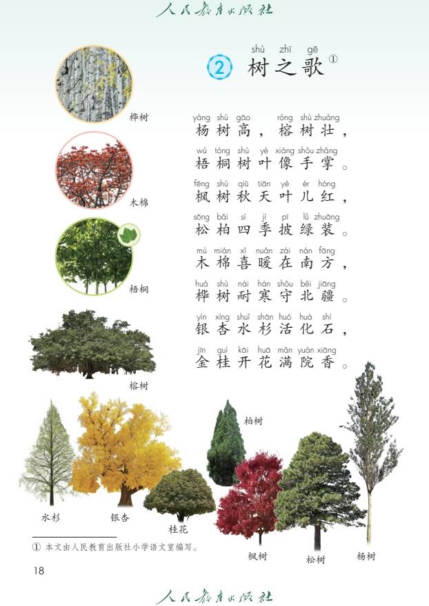 - 识字单元(第二单元):以 4 篇韵文(《场景歌》《树之歌》等)为载体,通过儿歌、拍手歌等活泼形式,集中渗透汉字构字规律;