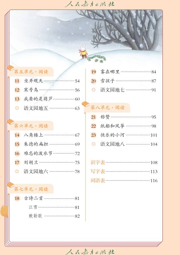 - 古诗调整:将 “日积月累” 中的《江雪》升级为课文,替换原《夜宿山寺》,丰富传统文化学习维度。