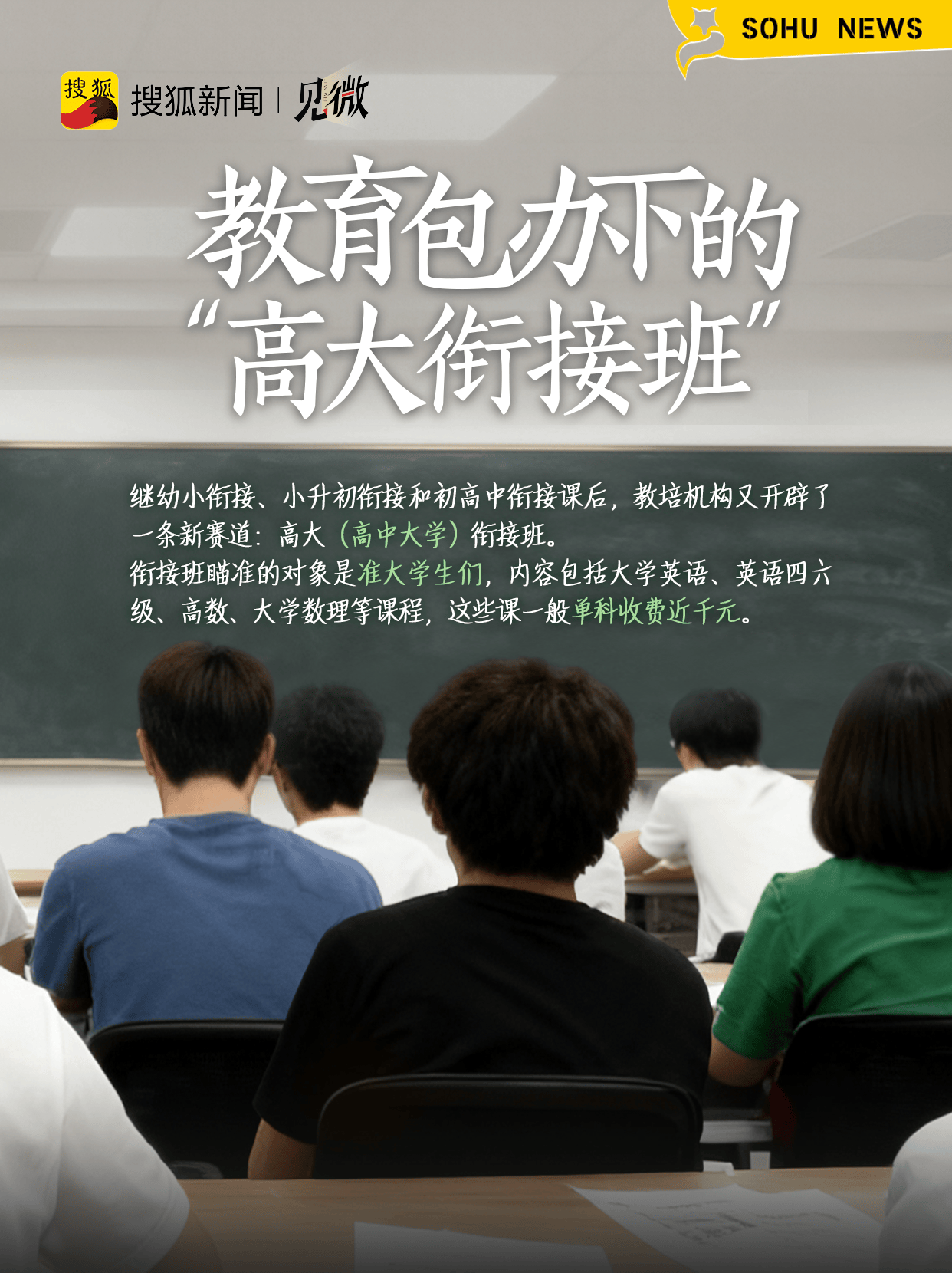 这些看起来很“高大上”的“高大衔接班”让部分学生和家长争相报名的同时也引发了新一轮的担忧:有人认为“高大衔接班”的泛滥,暴露的是教育包办思维的惯性延续。家长们习惯性地将孩子的成长视为“可设计的工程”,从幼小衔接到初高衔接,再到如今的“高大衔接”,始终想用培训课程替代孩子的自主体验。同时,高校的加入也让教育机构与高校共同将“衔接”打造成一门炙手可热的生意,学生和家长的焦虑被不断催化放大。