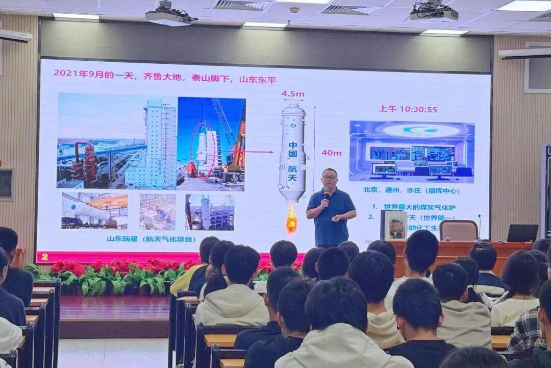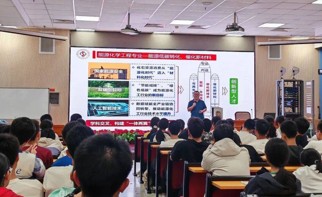 讲座中,刘博男副教授围绕三大核心主题层层深入,引导学生建立专业认知与价值认同。在“识化学之美,立化工之志”部分,从学科内涵与专业设置出发,系统解读化学与化工专业的关联及发展前景,帮助学生搭建专业认知框架,激发其对化工领域的探索兴趣;在“成石大学子,为能源报国”部分,围绕“大平台”“大学问”“大视野”,全面介绍了我校的校史底蕴、特色学科、人才培养及科研实力,让学生深切感受学校“能源特色、世界一流”的办学定位,现场反响热烈;在“端能源饭碗,化天下幸福”部分,从思政育人视角剖析我国能源结构现状与发展趋势,鼓励学生将个人理想与国家需求相结合,选择能源、化工等关键领域专业,为国家能源安全与稳定发展贡献青春力量。