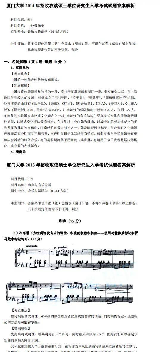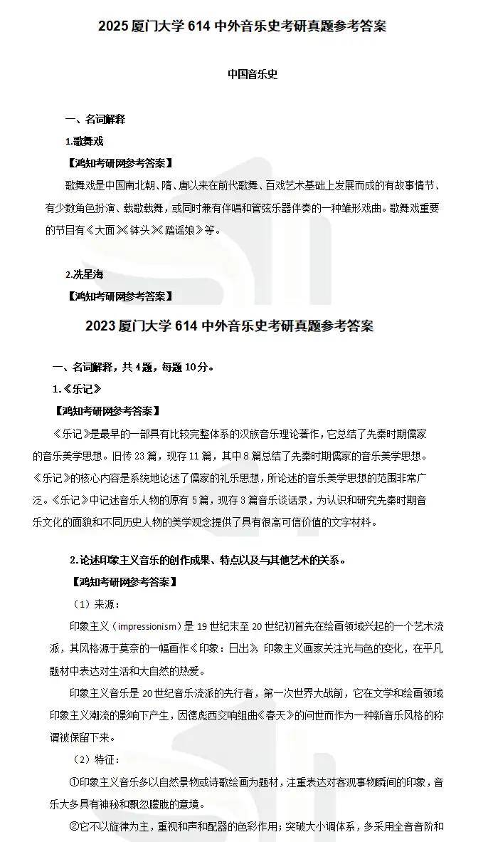 2009-2014,2018-2019、2023、2025年厦门大学614中外音乐史考研真题参考答案【新增25年】