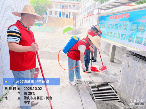 河台镇初级中学联合专业消杀团队对校园内的下水道进行灭蚊消杀。