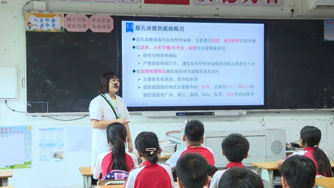 课堂上,教师通过主题班会向学生们科普基孔肯雅热预防知识。伍健豪 摄