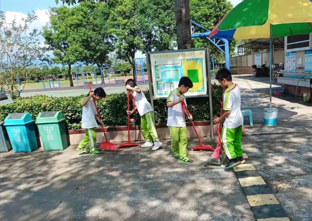 高要区白土镇塱鹤小学同学们化身“环境小卫士”。