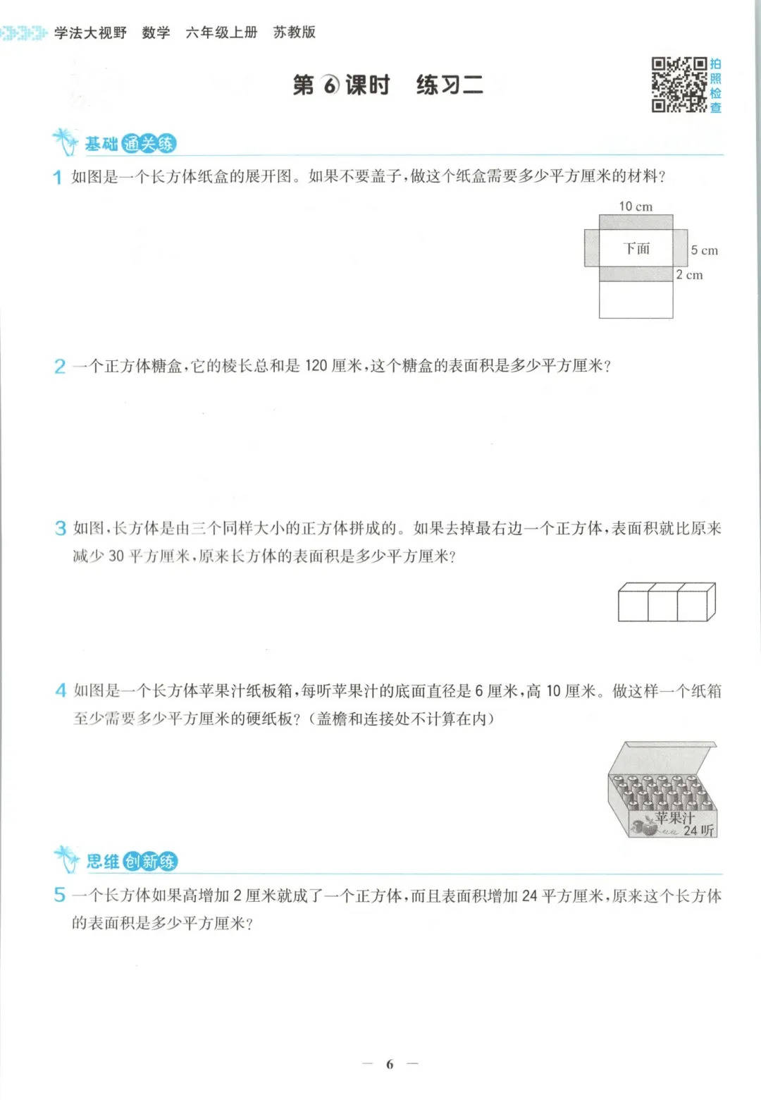 六年级是数学知识综合运用和小升初备考的关键期,这套资料把重难点拆解得分明清晰。长方体和正方体单元,从认识特征、展开图到表面积、体积计算,结合收纳箱、蚊帐、抽纸盒等生活实例,把抽象的几何知识变得直观易懂;分数乘除法单元从基础运算到实际应用,层层递进培养数感和解题思维。它对六年级娃的学习帮助可太大了!知能达标练夯实基础,像长方体表面积的不同题型练习,把易错点(如实际用料的面数、单位换算)练透;素养培优练挑战思维,如正方体蚂蚁最短路径、分数应用题的复杂推理,锻炼逻辑能力。单元整理和复习、易错点训练还能帮娃查漏补缺。六年级用这套资料,既能夯实数学基础,又能提升思维能力和小升初竞争力,数学学习高效又轻松,成绩想不进步都难~
