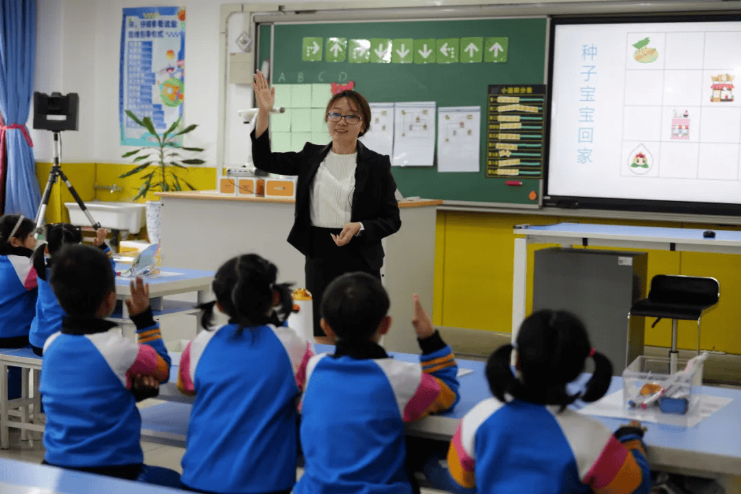 同样执教AI启智课程,刘莹老师则通过提问引导学生帮助“种子宝宝”回家,让孩子们感受到提升本领的快乐、助人为乐的美好。应该坚持自己的观点、如何拓宽思考的视野、怎么克服眼下的困难……在老师的循循善诱下,孩子们高效完成了与伙伴间的协作。