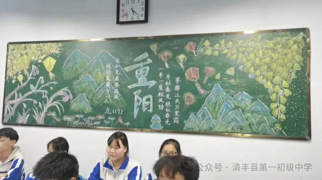 各班围绕重阳文化,精心策划主题板报。同学们以笔寄情、以画传意,一幅幅板报构思巧妙、图文并茂,生动展现重阳节的历史渊源与文化内涵,更在方寸之间传递出对长辈的深深敬意,使传统美德如春风化雨,浸润心田。