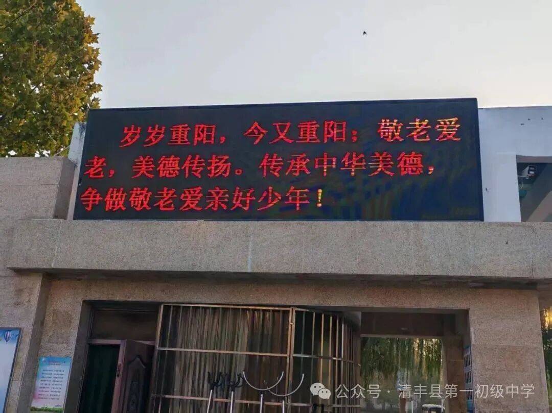 金风送爽,又逢重阳。为弘扬中华民族尊老敬贤的传统美德,培育学生 的感恩情怀,清丰县第一初级中学于重阳佳节来临之 际,组织开展以“情暖金秋,爱在重阳”为主题的系列教育活动,在校园内外掀起 敬老、爱老、助老的文明风尚。