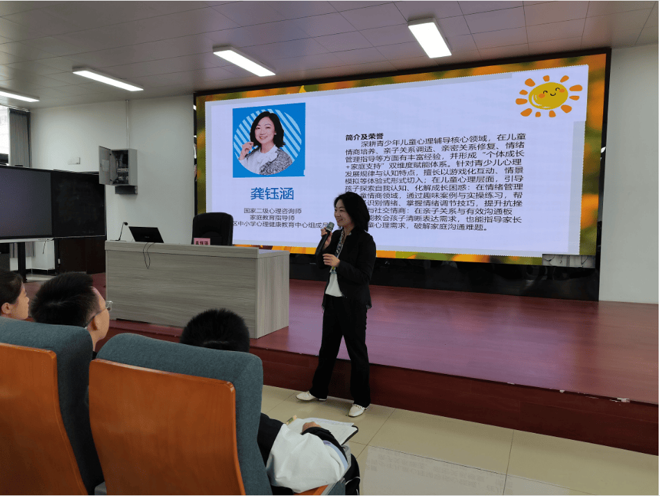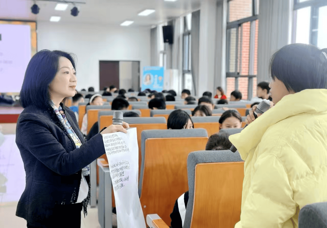 活动开始,龚老师抛出 “心理咨询师是否也有负面情绪” 的趣味问题,打破课堂沉默 —— 学生们从好奇观望到踊跃猜测,积极性被彻底点燃;随后她重点讲解三种科学应对负面情绪的方法,用通俗语言帮学生理解 “情绪没有好坏,学会应对才重要”;最后紧扣学生生活实际,以常见场景为例,通过互动问答引导大家实战运用:有学生分享 “最近总因为错题苦恼”,龚老师便带领全班一起探讨,现场氛围热烈又温暖。从害羞躲闪到主动举手,孩子们在轻松互动中慢慢学会正视情绪、化解烦恼。