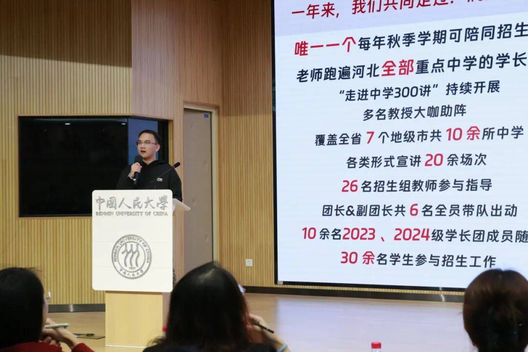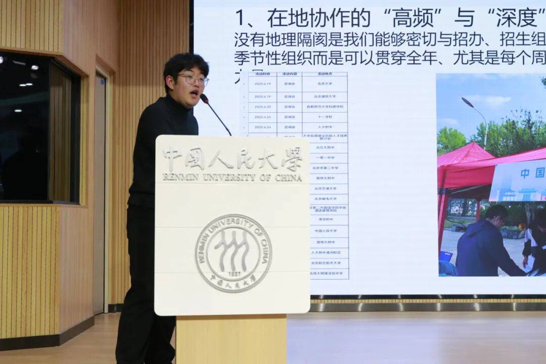 我们围绕“筑基—深耕—决胜—展望” 推进工作。通过招募成员、划分片区搭建团队运营框架,以多场见面会凝聚团队力量;定制针对性内容开展宣讲,结合寒假多场活动、招生组线下走访及线上家长群答疑深耕生源维护;暑期组织学生助理配合老师开展高招会,齐心协力全力吸引优质生源。未来,我们会针对新高考趋势,以立体化宣传、实证案例和全周期服务优化工作,持续助力三晋学子筑梦人大!