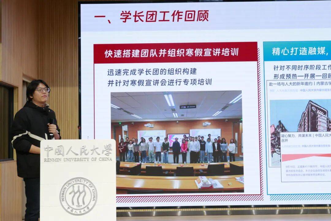 招生就业处处长丁莉婷对“学长来了”全体学长表达感谢。她指出,“学长来了”团部述职展演展现的风貌,是八年来一代代“学长”传承人大精神、传播人大故事的集体写照。“学长来了”项目不仅是学校本科生招生内涵式发展的有益探索,更培育了一批爱校荣校的人大青年。希望活动能进一步发挥育人实效,激励更多学子加入传薪“先锋队”,为学校招生工作贡献力量。