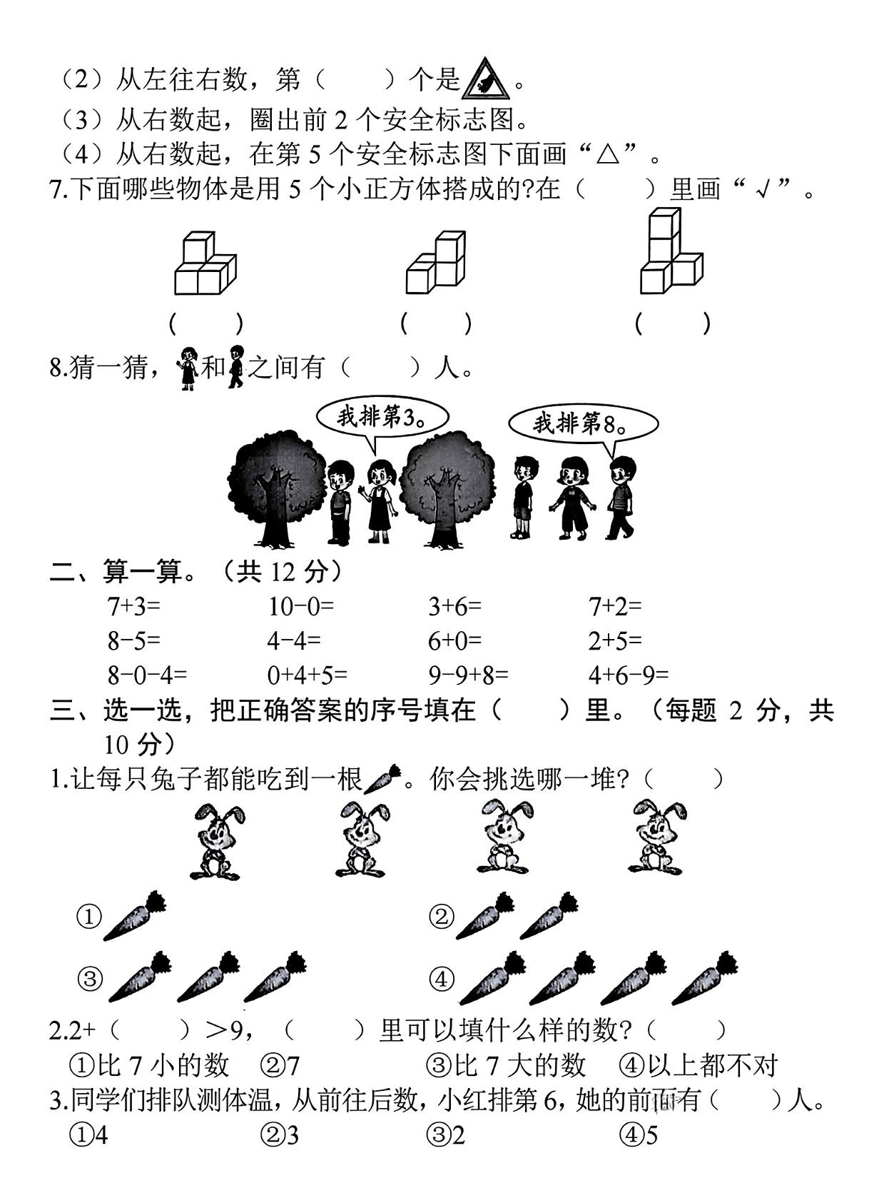 试卷完全贴合课本知识点,从 20 以内加减法、比大小、认识图形到简单应用题,覆盖期中所有必考点。题型全面且典型,既保留基础题帮孩子巩固知识,也有稍具挑战性的题目锻炼思维,能精准检测孩子的学习漏洞。