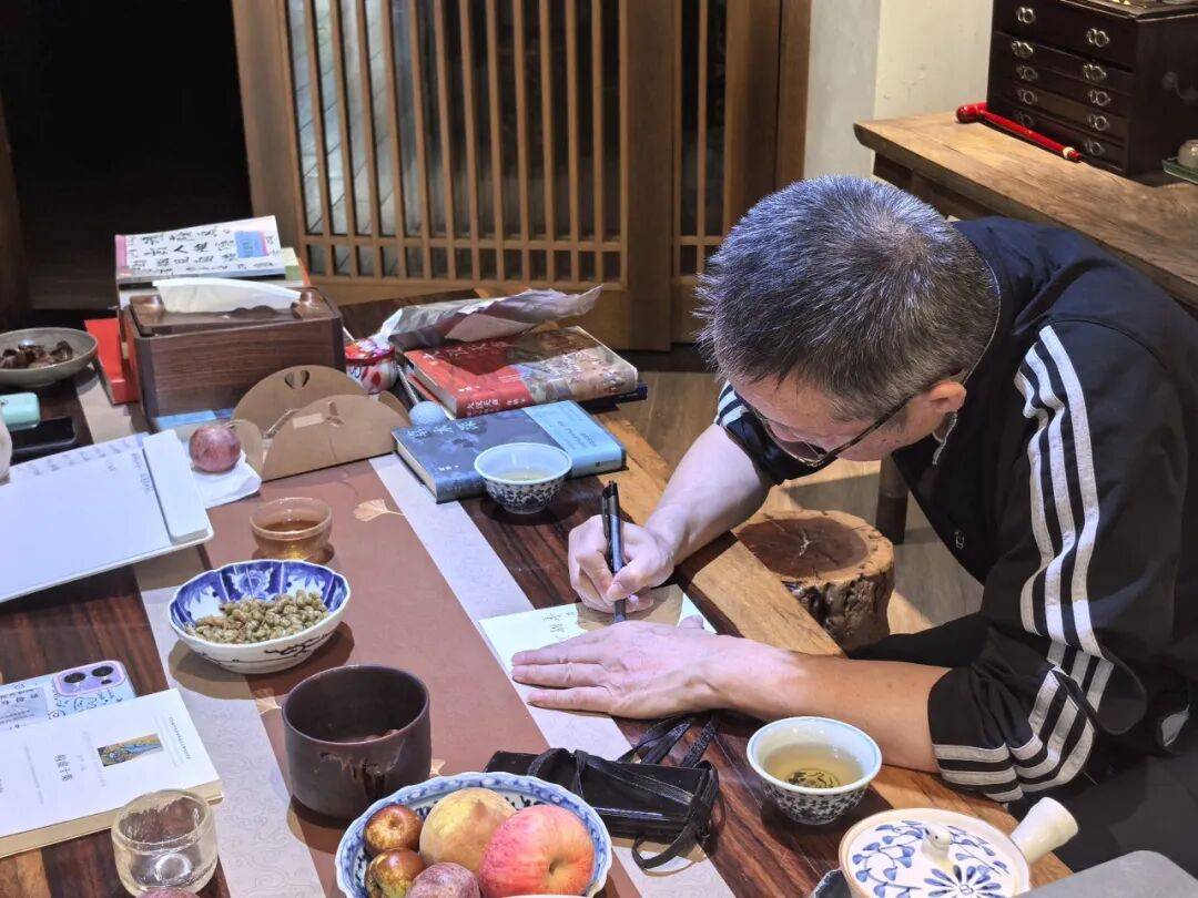 我们一进门,郭教授就非常热情地招待我们,为我们倒茶、分享水果,让我们边吃边聊。当谈到“在您过往的人生经历中,最重要的是什么”这个问题时,郭教授毫不犹豫地给出了答案:“遇见好的老师”。他感慨,求学路上一位位恩师的引领,是他此生最宝贵的财富。怀着这份感恩,他始终坚信“教书是一件‘活人'对‘活人'的事情”。他形容这份工作如同“看庄稼”,见证一个个鲜活生命的成长,并由衷地感到喜悦。谈及执教生涯中最有成就感的事,郭教授提到了他为文学院国家文科基地班教授小说创作课的经历。他将学生们的习作精心汇编,出版了《构虚十集》,并为每一篇作品写下了详尽的点评,累计大几十万字。他说,那几十万字,是他送给学生们的礼物,也是他教育生涯中最珍贵的记忆。他希望通过自己的评语,让学生们感受到文字的温度和力量。