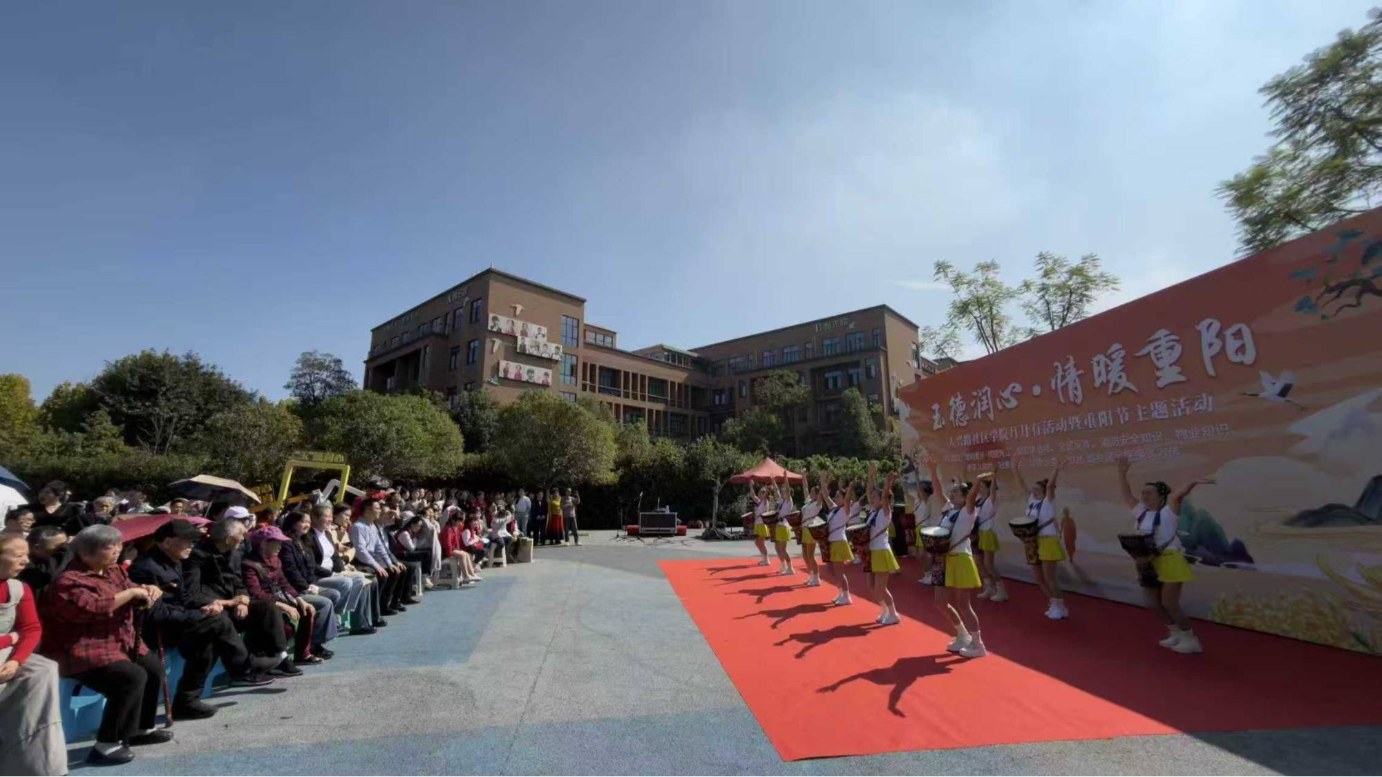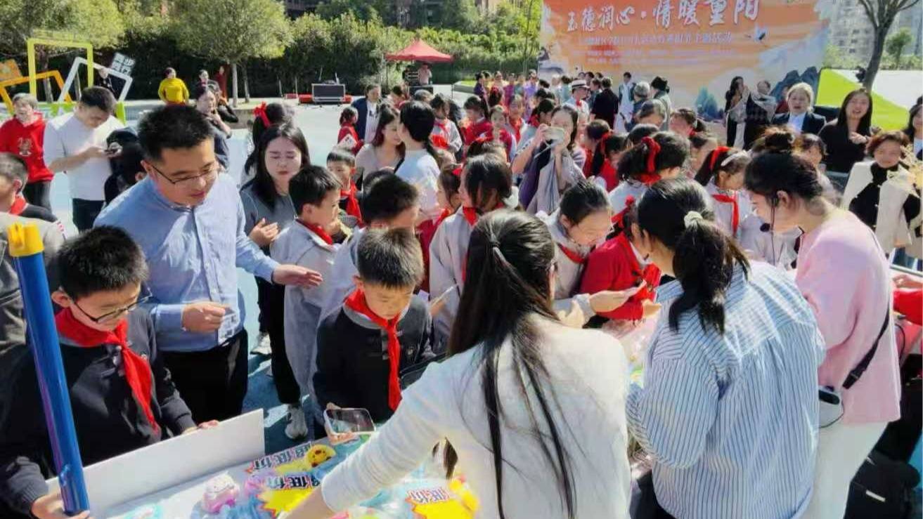 10月28日,重庆两江新区行远小学师生携手人和街道人兴路社区居民及学生家长,在“行远人兴”家校社共育园开展一堂以“玉德润心·情暖重阳”为主题的传统文化美育思政课。活动融入敬老爱老文化,通过观看川剧变脸、走秀、非洲鼓表演以及参与敬老仪式和非遗实践等活动,在温情互动中深化学校德育实践。