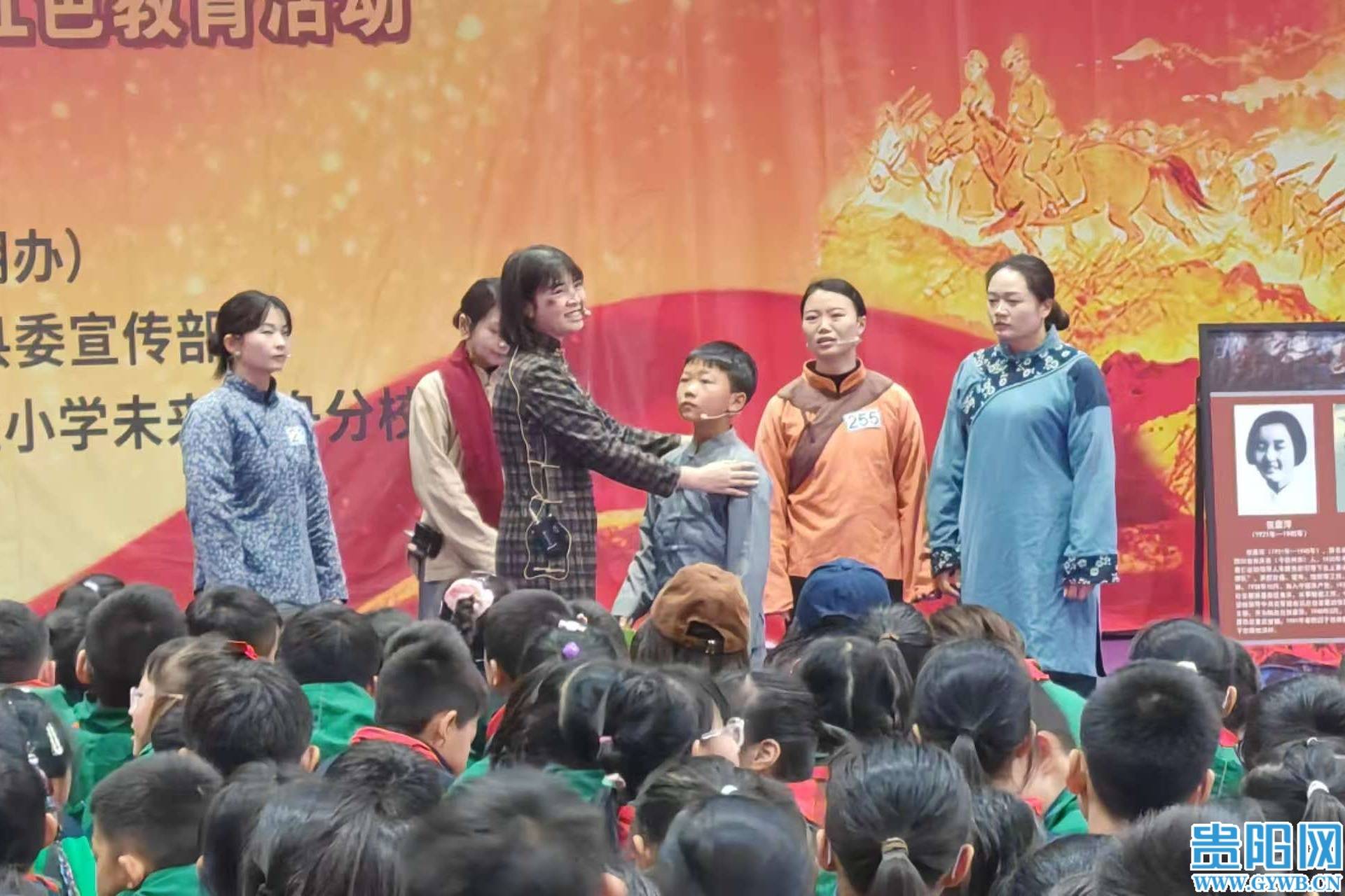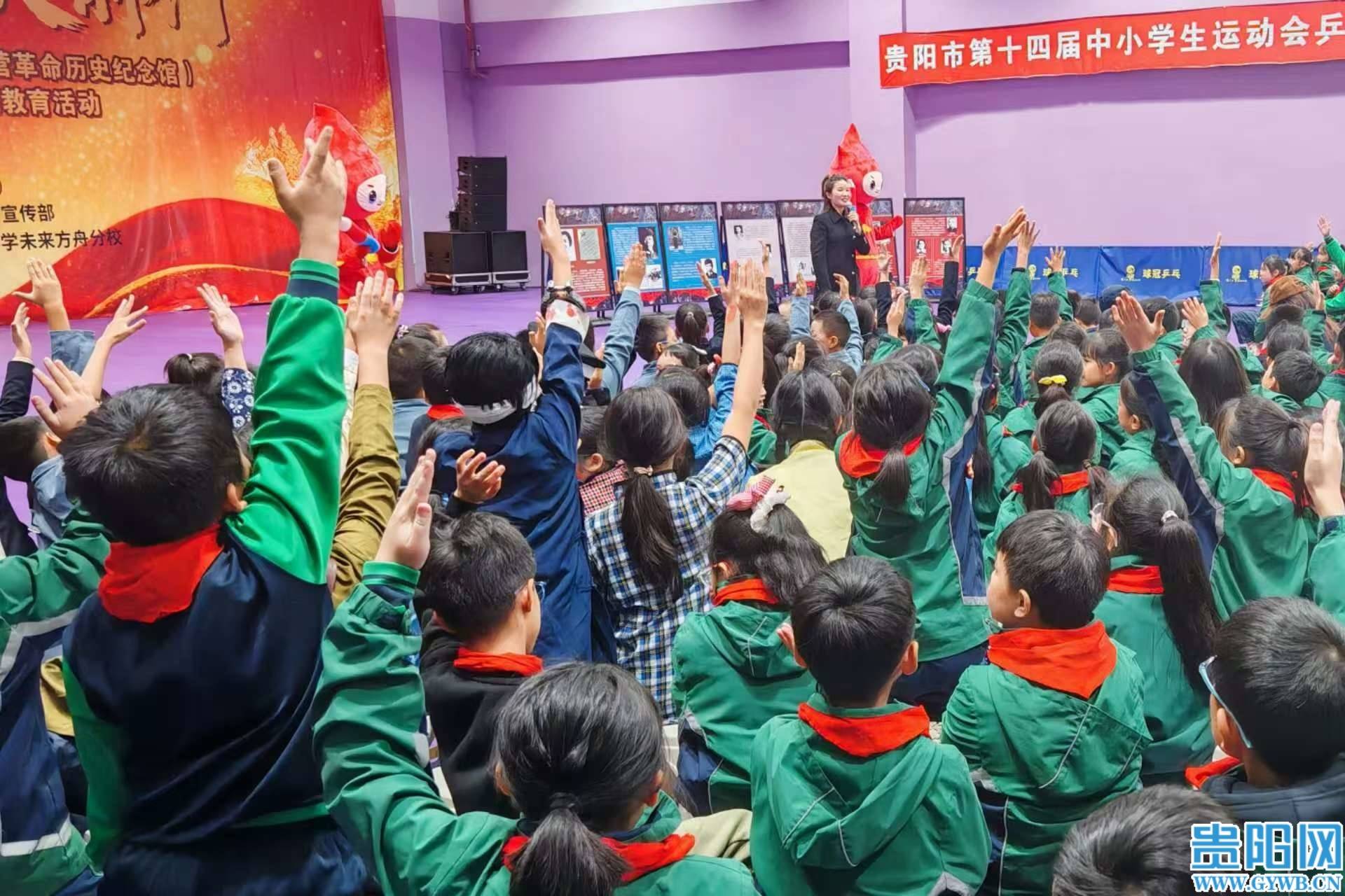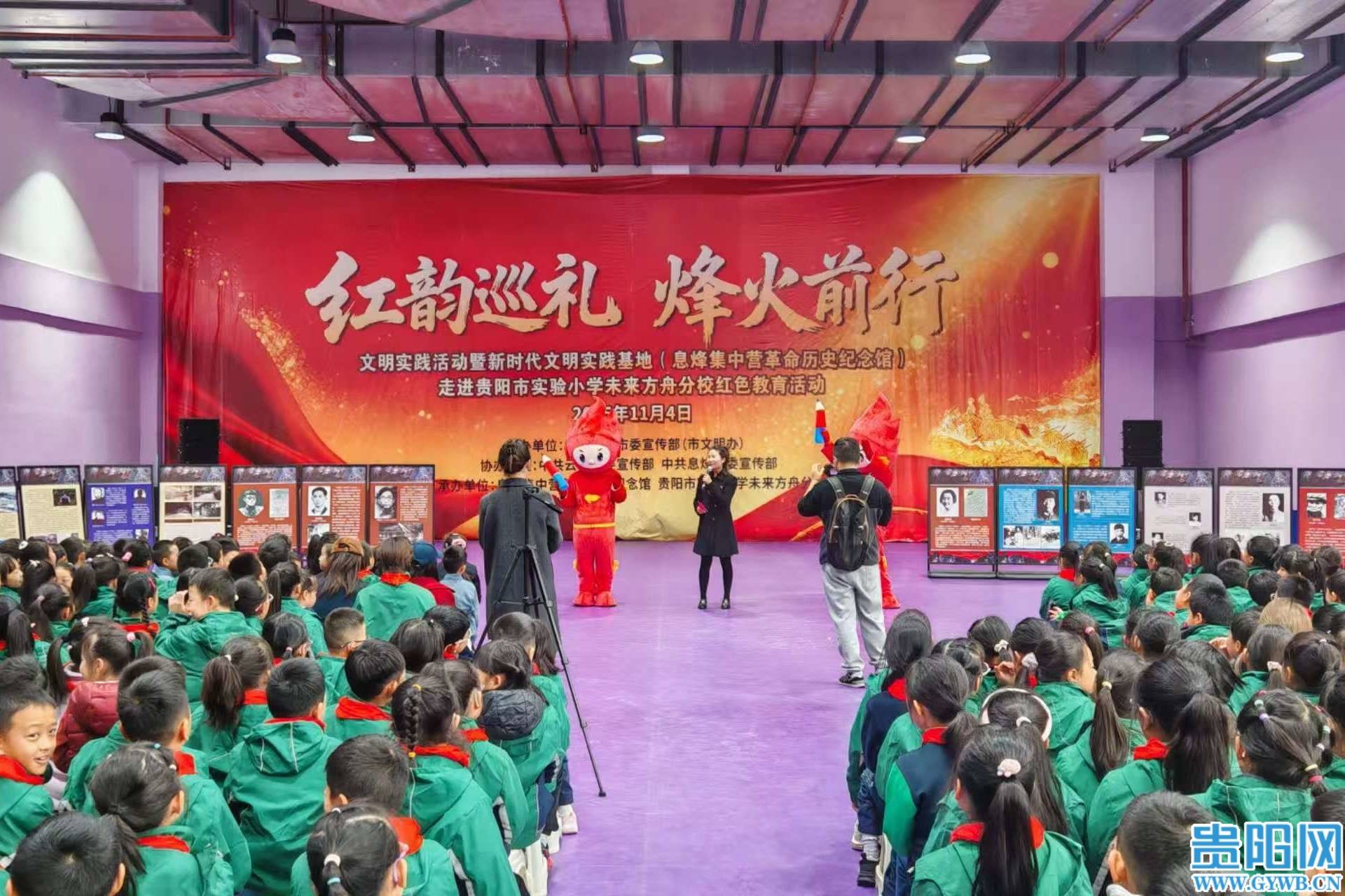 11月4日,一场以“红韵巡礼 烽火前行”为主题的文明实践活动在贵阳市实验小学未来方舟分校展开。本次活动打破传统思政课的静态讲授,将“行走的思政课”带入校园,通过一系列沉浸式环节,构建起一堂融合听觉、视觉与情感体验的红色主题教育课,全校900余名师生共同参与。