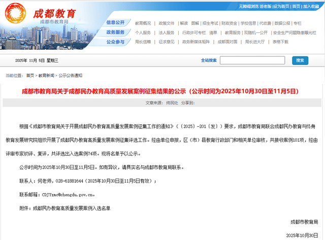 近日,成都市教育局官网发布公示!