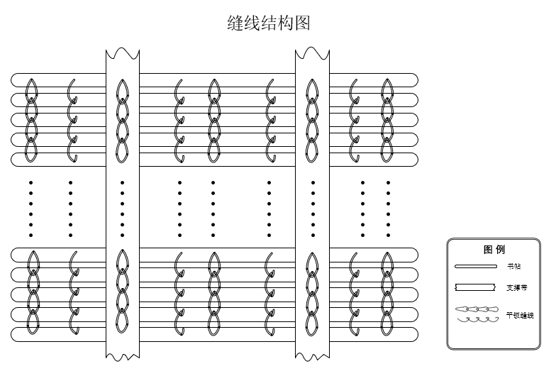 缝书种类及结构:书帖中心锁线缝(实锁)/有支撑带(平缝布带缝)