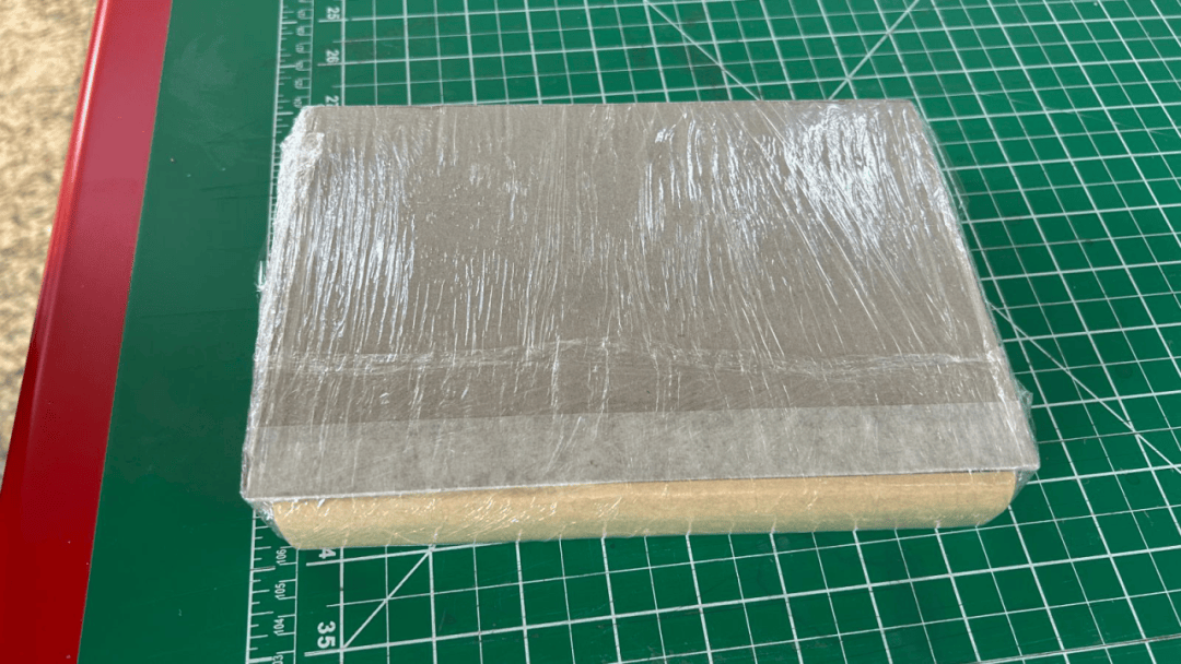 2.在书脊的空腔纸上刷无酸PVA,从中间往两边刷。粘贴书脊后使用保鲜膜裹紧书籍定型 1 小时。
