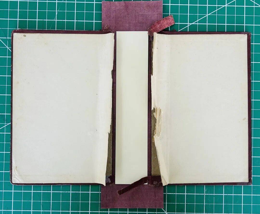本次修复工作的难点主要体现在书壳的重新制作及其与书芯之间的连接操作上。作为承载与保护书芯的重要结构,书壳的制作在功能性与技术性上均提出较高要求,尤其是在开合顺畅性、结构稳定性与整体协调性方面,对修复人员的操作精度与经验有较大挑战。