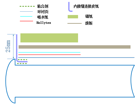 (2)整平晾干如下图所示,为嵌入封面板预留2.5cm长度的皮纸。