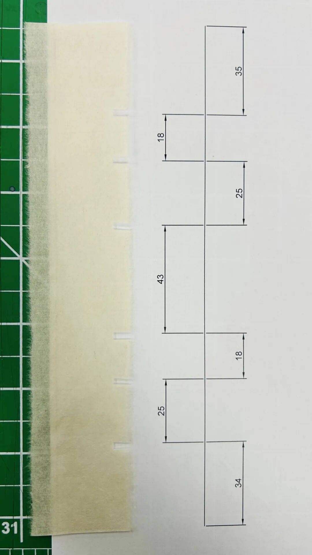 (1)首先绘制线迹图,为裁剪皮纸齿状边缘提供准确尺寸。