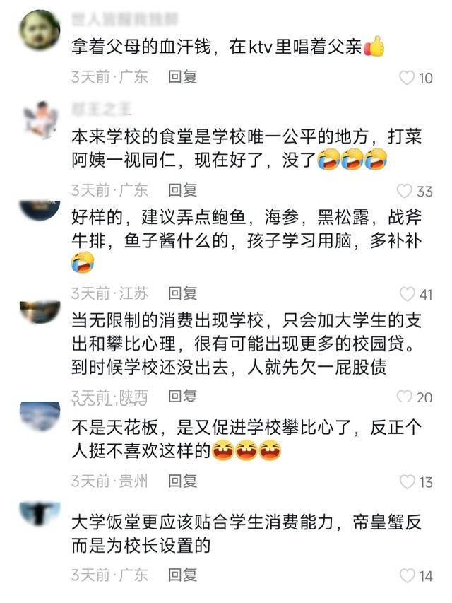 有人忧心“攀比”。但攀比的根源在于心,而不在于物。没有帝王蟹,攀比也会存在于手机、鞋服等任何地方。把社会风气问题简单归咎于一只帝王蟹身上,反倒是回避了教育中更核心的引导责任。大学的职责,是培养学生内心的丰盈与自信,让他们不被物欲所役,而不是打造一个隔绝现实世界的“无菌温室”。