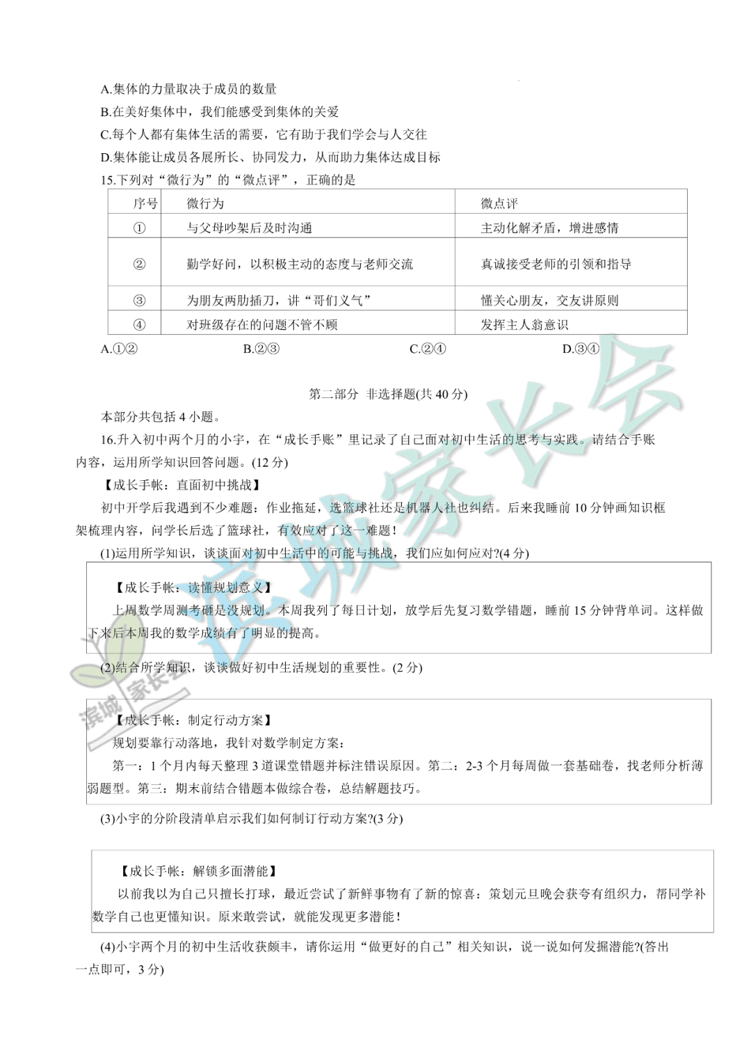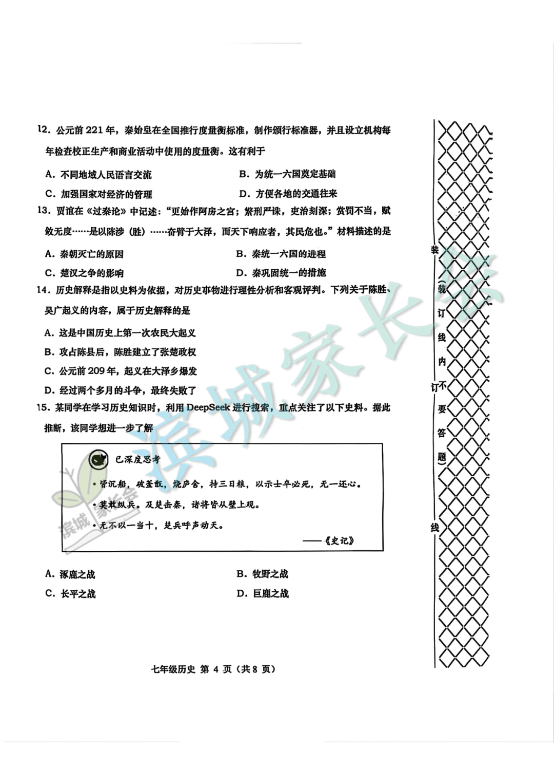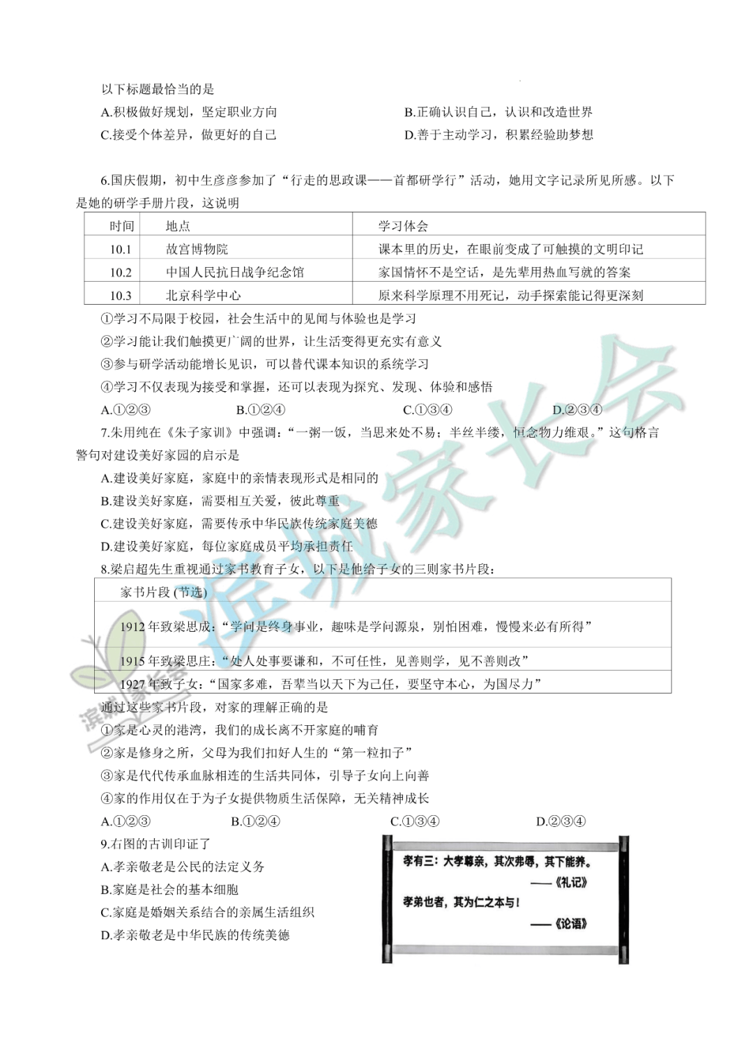 7-9年级期中考试真题+答案