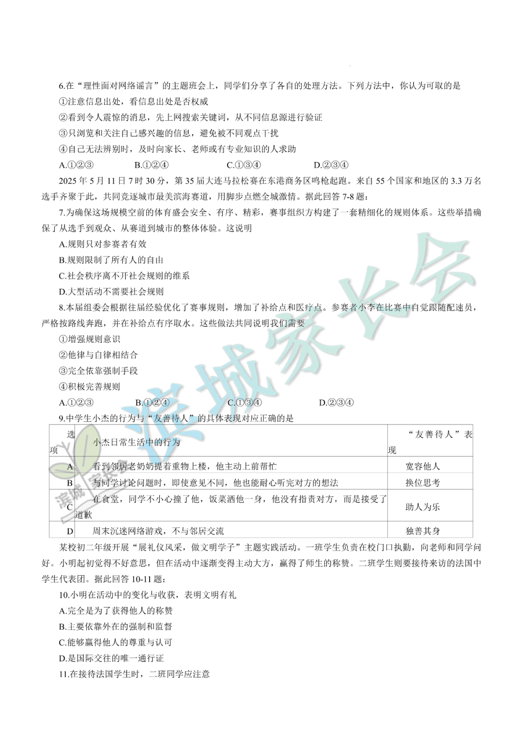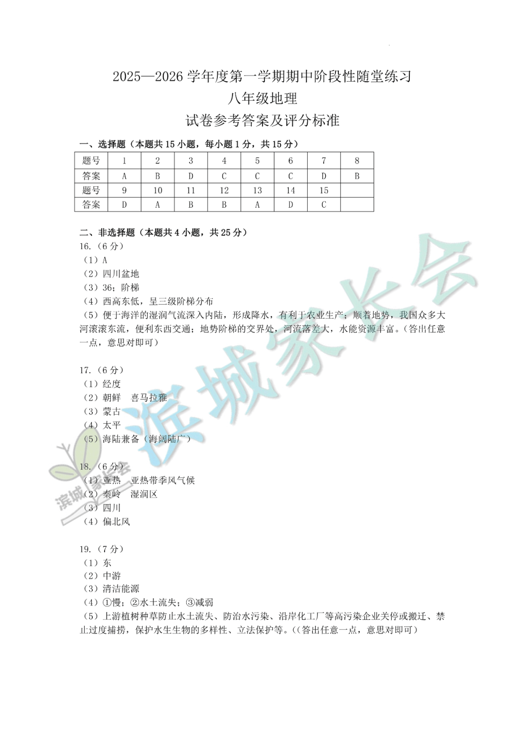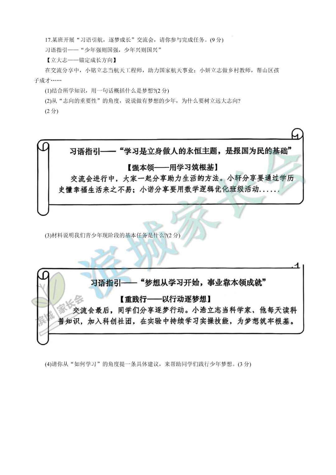 7-9年级期中考试真题+答案
