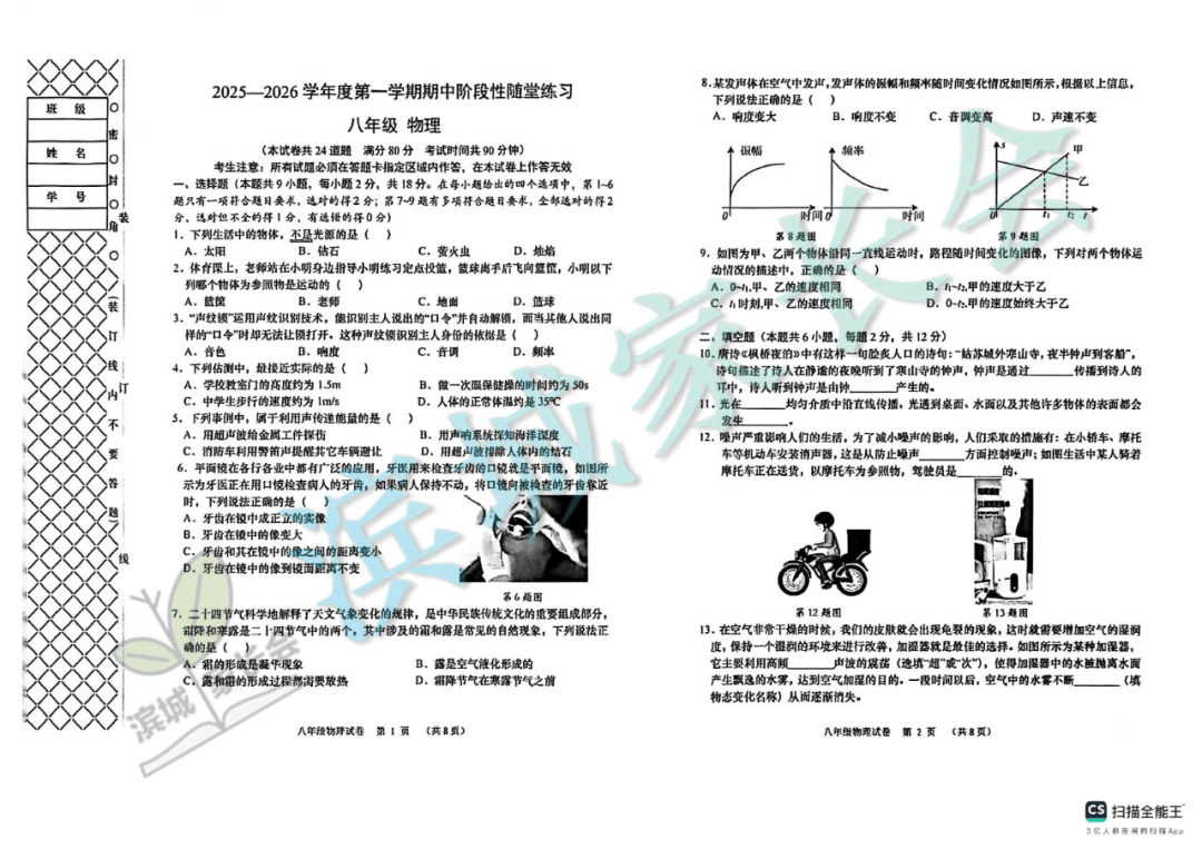 初二试卷+答案