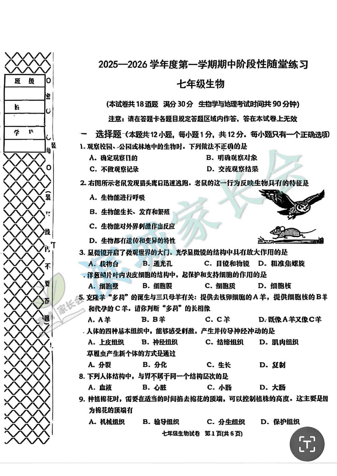 初一试卷+答案