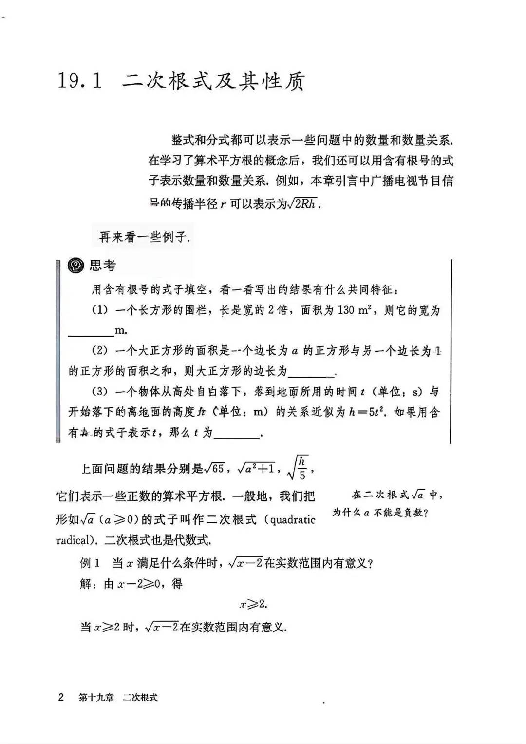 教材对核心知识点的编排极具系统性,能帮学生稳稳打通 “代数→几何→统计” 的学习脉络,为后续高中数学学习筑牢根基。在代数板块,“二次根式” 的学习是重点突破 —— 从二次根式的概念、性质(如a(a≥0)的非负性),到二次根式的加减乘除运算(如2×3=6、8−2=22−2=2),教材通过循序渐进的例题与练习,让学生掌握新的代数式形式及运算规则,避免 “符号出错”“运算顺序混淆” 的问题,为后续学习一元二次方程、二次函数等复杂代数内容打下基础;“函数和一次函数” 则是学生首次系统接触函数知识的关键 —— 教材从 “变量与常量” 的概念引入,到一次函数的表达式(y=kx+b,k=0)、图像(过(0,b)和(−kb,0)的直线)、性质(k>0时y随x增大而增大,k<0时相反),再到一次函数与方程、不等式的联系,一步步帮学生建立 “变量之间的对应关系” 意识,培养数形结合思维,这可是高中学习指数函数、对数函数的核心铺垫。