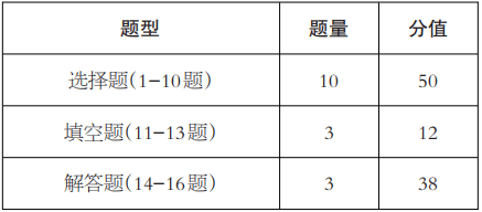 纵览近年来我省高职单招考试数学卷,其题型结构、难度等级等基本保持稳定。试题难度相对简单,考查范围覆盖了高中数学课程的主干内容,主要考查考生对数学概念和基础知识的理解、问题解决与实际应用能力,触及到对学生数学素养的考查。