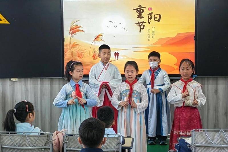 向荣巷小学充分挖掘传统节日的文化内涵,围绕中秋、重阳等节日开展主题诗词分享活动。师生身着传统服饰,齐声吟诵“皎皎秋空八月圆”“遥知兄弟登高处”……老师在诵读中融入习俗讲解并带领学生绘制茱萸枝,实现诗词与传统文化的深度融合。