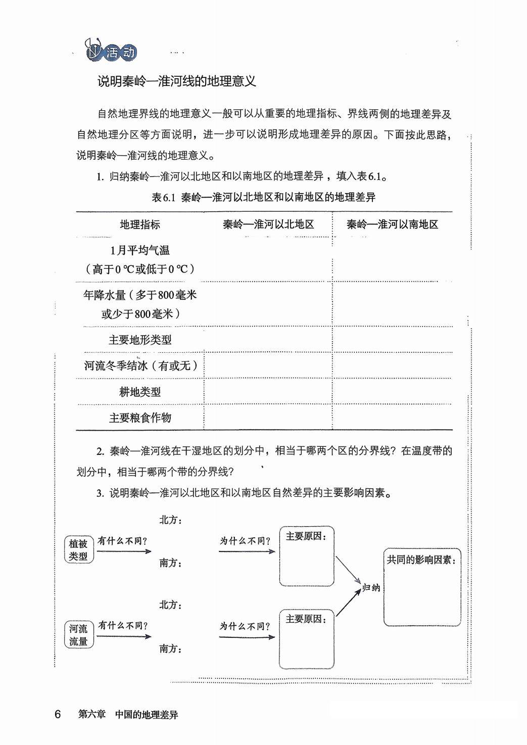 在 “中国的地理差异” 章节,学生将学习我国自然环境(气温、降水、地势)和人类活动(农业、人口、城市、经济、文化)的显著差异,理解秦岭 - 淮河一线作为重要地理分界线的意义,以及我国四大地理区域的划分依据。北方地区部分,探究其地形、气候等自然特征与农业的关系,了解东北三省的地理特点、黄土高原的生态问题及治理、北京的城市职能与发展。南方地区章节,分析其自然特征与农业,学习长江三角洲地区的经济发展、香港和澳门的特别行政区制度,以及台湾省的地理概况和主权归属。西北地区部分,研究其干旱的自然特征、农业类型,以及塔里木盆地的资源与环境。青藏地区章节,探索其 “高”“寒” 的自然特征、农业特色,还有三江源地区的生态保护。