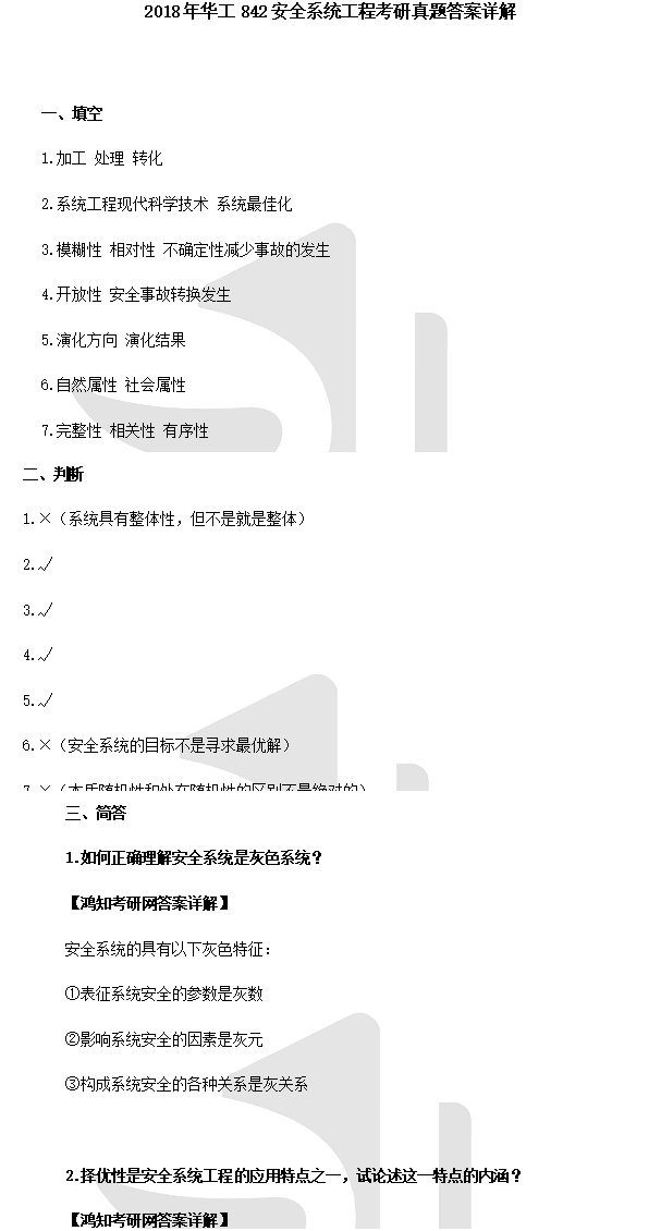 2018年华南理工大学842安全系统工程考研真题答案详解