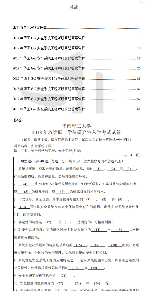 2011年华南理工大学842安全系统工程考研真题答案详解