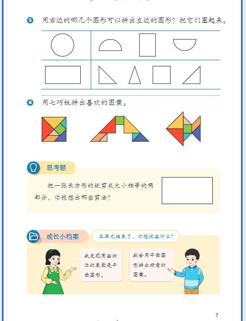 - 动手拼搭:用七巧板、图形积木拼出小动物、小房子,既巩固图形认知,又培养空间想象力。