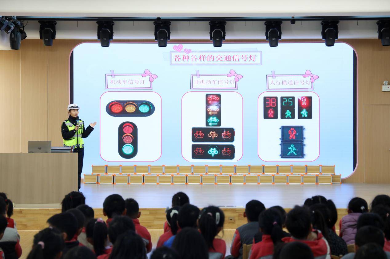 结合幼儿的年龄特点,胡警官用浅显易懂的语言搭配活泼有趣的动作,把枯燥的交通安全常识和注意事项讲得绘声绘色。生动形象的课件一页页展开,交通信号灯的含义、步行时的安全要点、乘车时的注意事项等知识,都通过寓教于乐的方式深深印在了孩子们的脑海里。