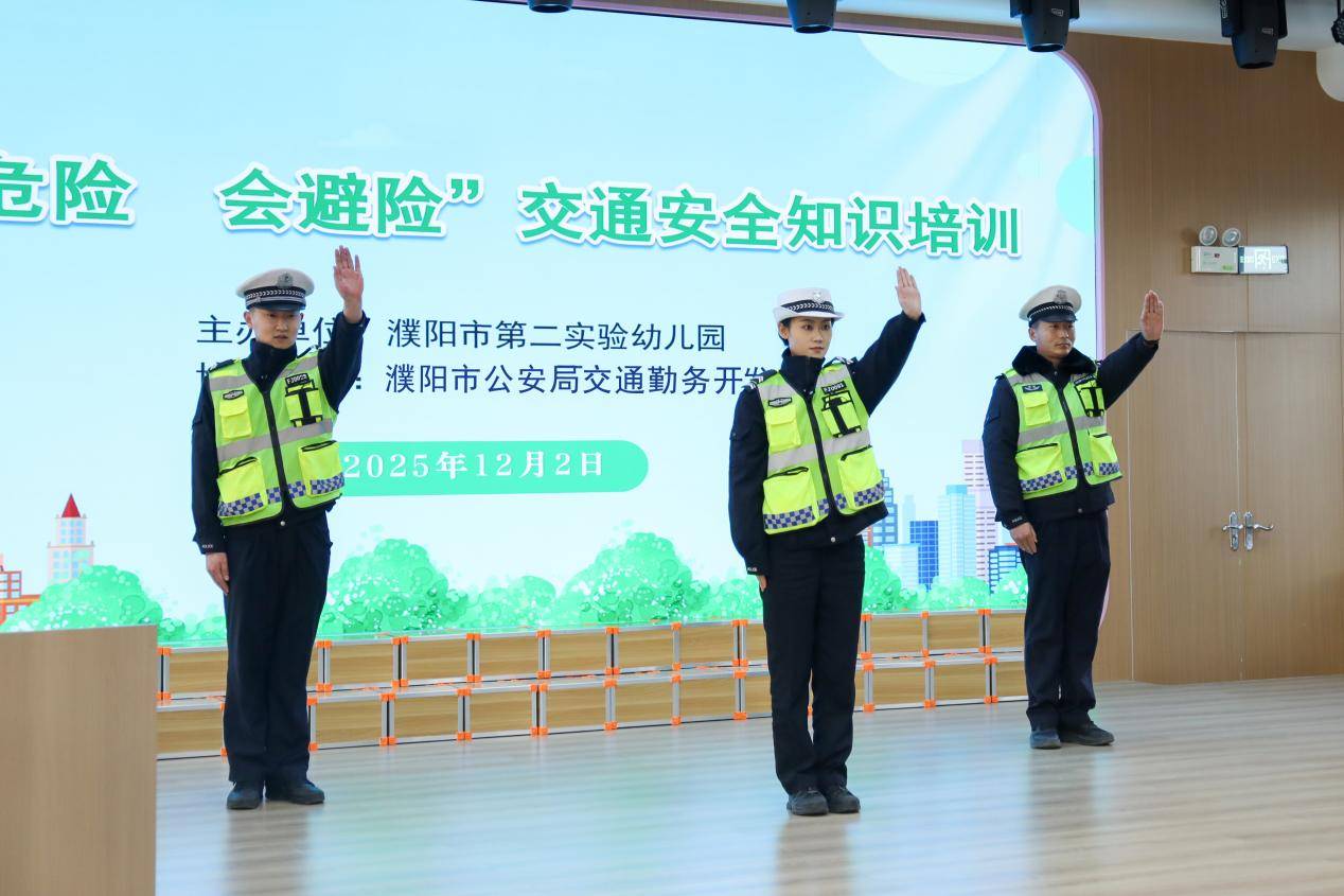 2025年12月2日,我们迎来了第十四个“全国交通安全日”,今年的主题是“文明交通,礼行天下”。为筑牢师幼交通安全防线,培养幼儿文明出行习惯,提高大家的交通安全防范能力和自我保护意识,濮阳市第二实验幼儿园特别邀请了濮阳市公安局交通勤务开发区大队的交警来园,为大班师幼带来了一场生动又实用的交通安全知识专题培训。