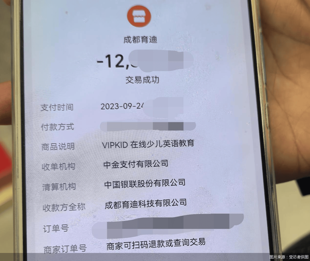 支付完成后,刘娜注意到一个矛盾点:一方面,支付页面的商品说明一栏为“VIPKID在线少儿英语教育”,收款方全称为“成都育迪科技有限公司”,是一家内地企业。另一方面,即便刘娜丈夫的手机号是境内号码,新注册的VIPKID账户也和以前的账户一样是境内账户,但刘娜的孩子还是要通过客服提供的学生端上课软件,登录“+852”的香港区号账户上课。