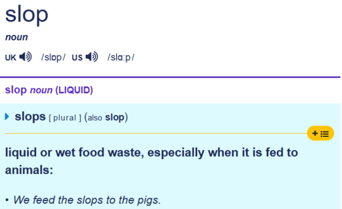 slop 本意是:猪食、泔水,稀里糊涂的一堆烂东西,所以把它和 AI 放一起,讽刺意味非常强。