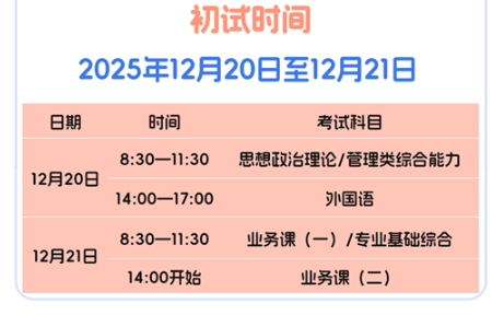 2026年全国硕士研究生招生考试将于12月20日至21日举行。