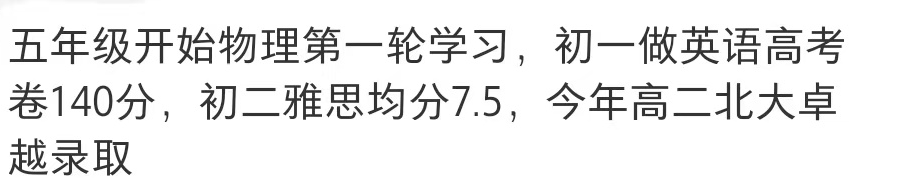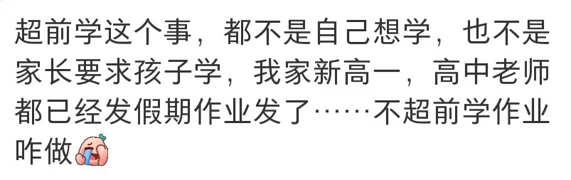 有些幼儿园学完小学知识,小学便开始接触初中全科,小升初的暑假已经学完中考所有考点,高一直接开始备战高考,高中还没毕业,高等数学的基础已经打牢……